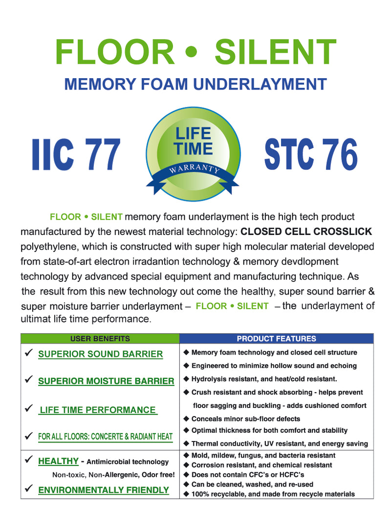 Underlayment Foam - Vapour Barrier is a moisture barrier underlayment for use with engineered hardwood and laminate floors.