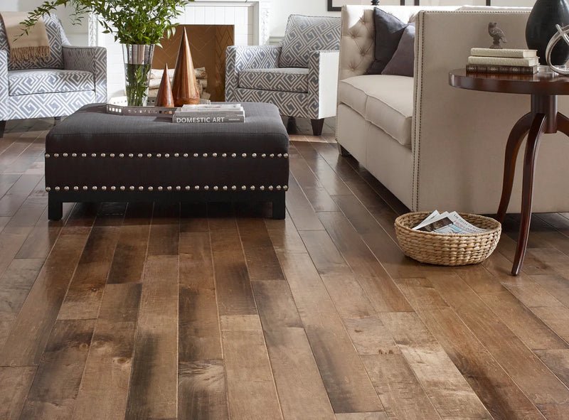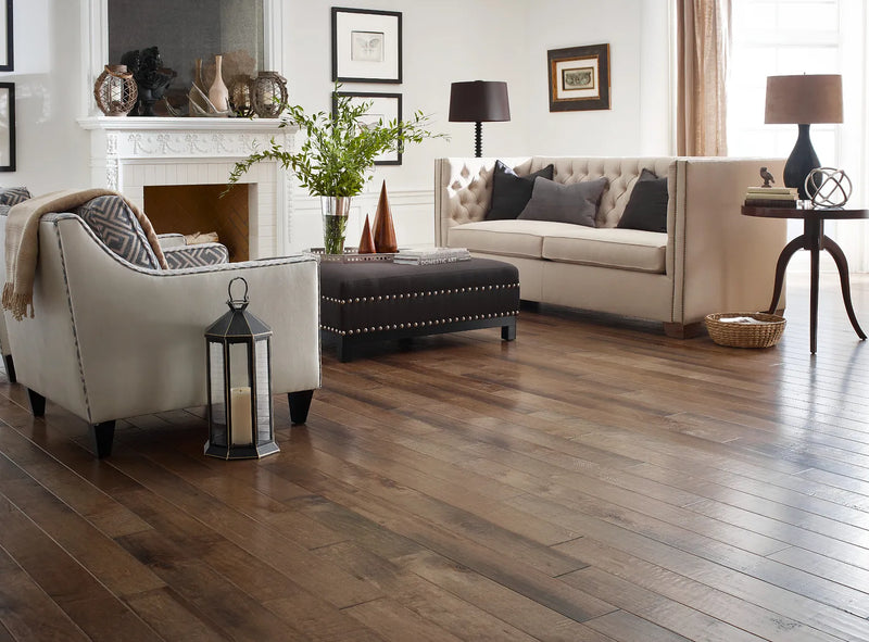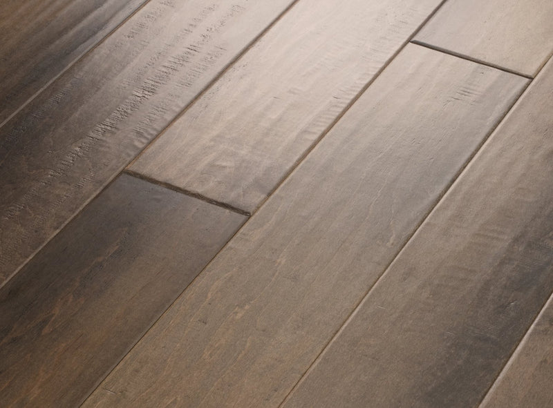 No matter what style or tone you're going for in your home, there's a color that will work perfectly for you - be it an on-trend light natural or a timeless, rich darker tone. This is one of our most popular hardwoods thanks to its ability to blend so easily into any environment. It's scraped and comes in a 5" plank that's guaranteed for 50 years. For those that want more rustic, grain-heavy lines, look at the companion Bernina Hickory style for texture and detail. For a cleaner, more polished look try the Bernina Maple.