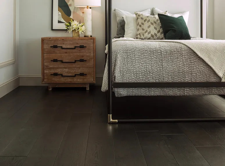 When designers set out to create a hardwood line with the perfect color palette, Buckingham and Kensington are your results. Each color was created with its own unique multi-layer staining process until it was the perfect shade. We chose Buckingham for our Unleashed line because its beautiful colors, impressively wide 8” planks and wire-brushed texture are the perfect transition between carpets. This style is a nominal 5/8" thickness. The durable White Oak can take any and all pet or human traffic, and the six warm tones blend well with the pet-friendly carpets when they’re used as area rugs. For cooler tones, check out Kensington.