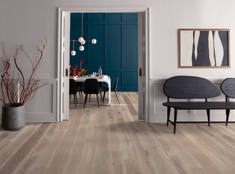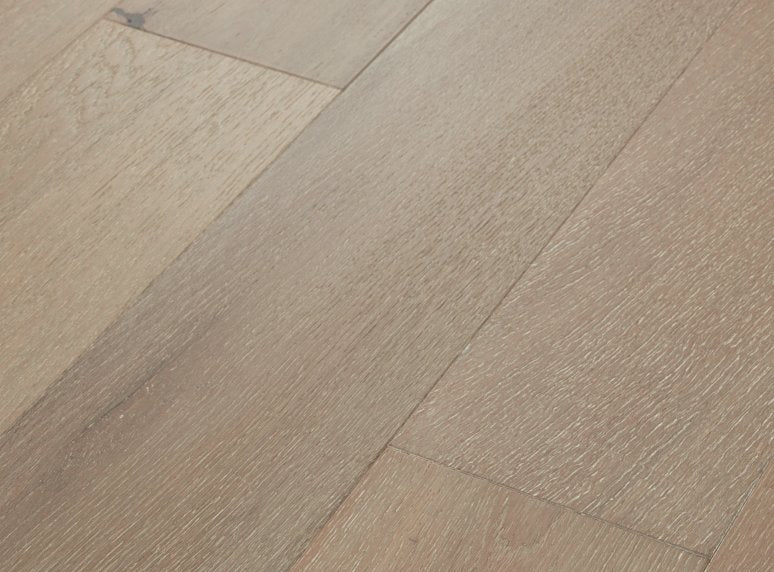 Serene tones and time worn textures elevate the character of this European Oak hardwood. Every 7.5-inch plank is carefully brushed, painted, then sanded to achieve a crafted finish with the natural essence of weathered painted wood.