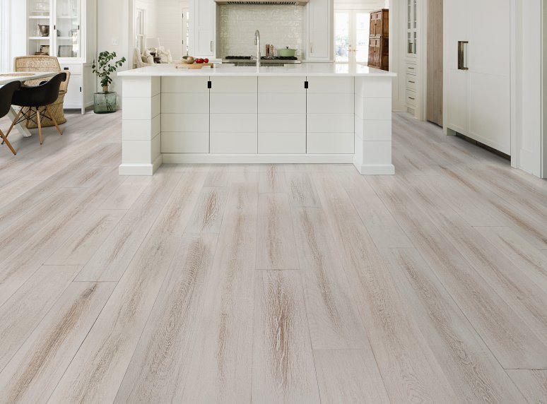 Serene tones and time worn textures elevate the character of this European Oak hardwood. Every 7.5-inch plank is carefully brushed, painted, then sanded to achieve a crafted finish with the natural essence of weathered painted wood.