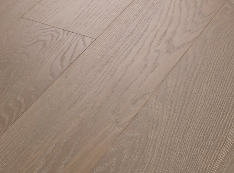 Indulge in the natural tranquility of clean lines, rippling grain, and grounding color transitions; European Ash hardwood infuses serenity into your sanctuary. Carefully crafted to accentuate its natural graining, this style is also available in a herringbone installation option for enhanced design versatility.
