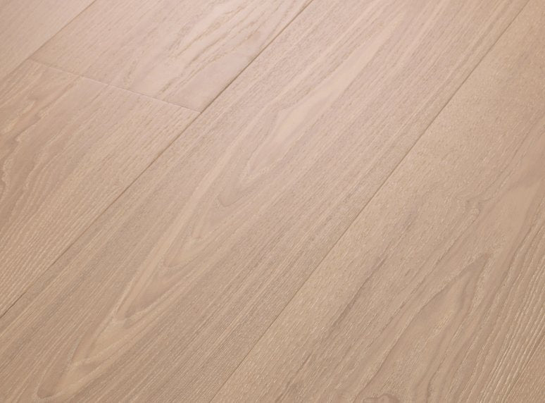 Indulge in the natural tranquility of clean lines, rippling grain, and grounding color transitions; European Ash hardwood infuses serenity into your sanctuary. Carefully crafted to accentuate its natural graining, this style is also available in a herringbone installation option for enhanced design versatility.