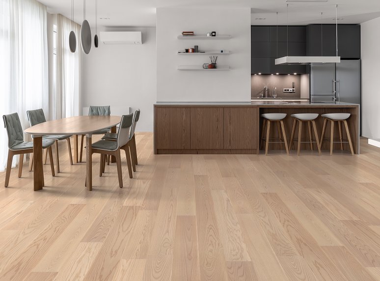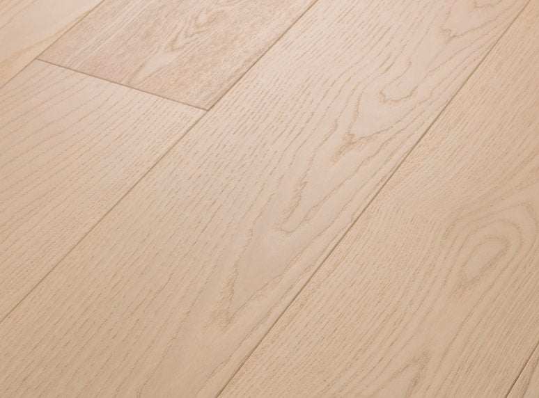 Indulge in the natural tranquility of clean lines, rippling grain, and grounding color transitions; European Ash hardwood infuses serenity into your sanctuary. Carefully crafted to accentuate its natural graining, this style is also available in a herringbone installation option for enhanced design versatility.