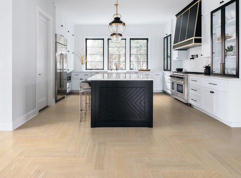 Indulge in the natural tranquility of clean lines, rippling grain, and grounding color transitions; European Ash hardwood infuses serenity into your sanctuary. Carefully crafted to accentuate its natural graining, this style offers a coordinating traditional plank option for enhanced design versatility.