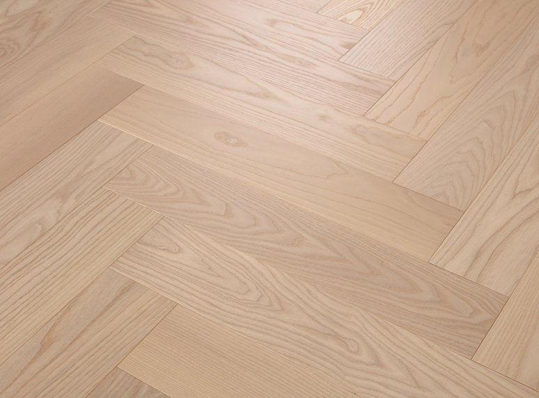 Indulge in the natural tranquility of clean lines, rippling grain, and grounding color transitions; European Ash hardwood infuses serenity into your sanctuary. Carefully crafted to accentuate its natural graining, this style offers a coordinating traditional plank option for enhanced design versatility.