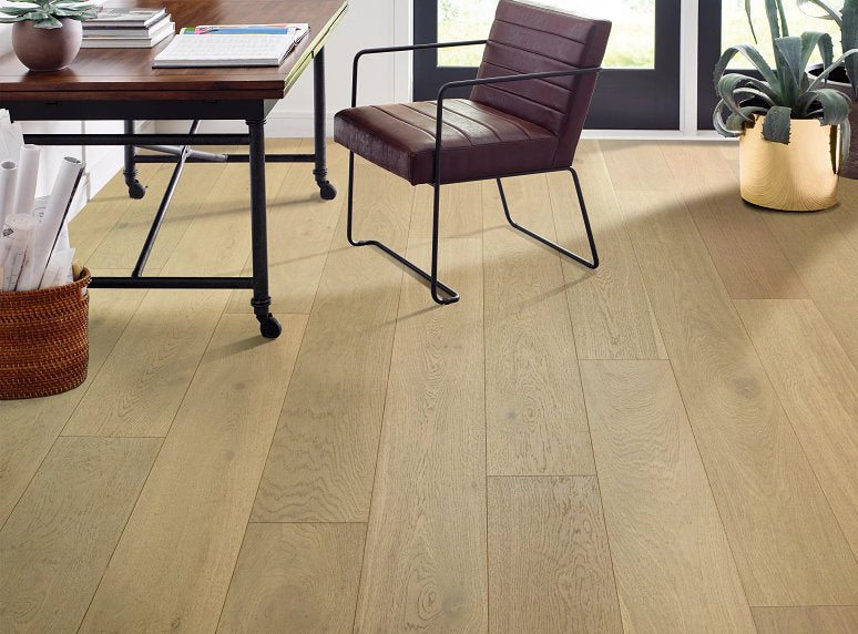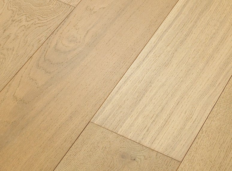 A raw finish brings forth the indigenous beauty of this white oak’s natural knots and grains. Two timeless texture options — a smooth open grain and a bandsaw cut that resembles the look of fine linen — allow for varied warm tones to shine through. A full half-inch thick, Natural Timbers is available in 9”-wide planks.