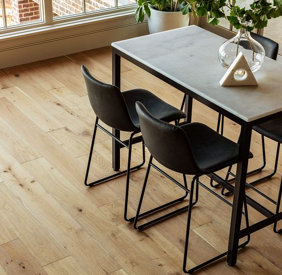 As the name suggests, Noble Hall’s grand, wide planks and wire-brushed surface lend a tone of strength and heritage to a space. But the unique modern color tones, including hard-to-find light, cool blonde woods, work perfectly with any style of decor. This impressive white oak series keeps things simple, while quietly and confidently balancing timeless elegance and current design trends.