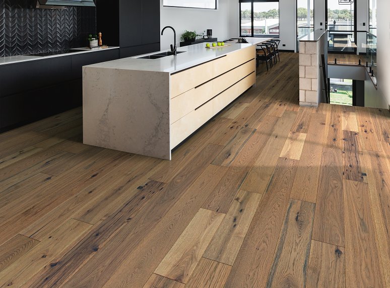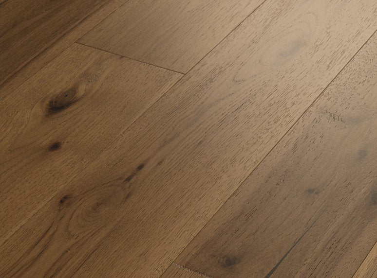 Taking inspiration from heirloom hardwood, warm tones and unique grain patterns accentuate the beauty of this hickory. Brushed with stains that react with the natural tannins of the wood, these planks will undergo an elegant transformation, capturing the vintage essence of treasured hardwood.