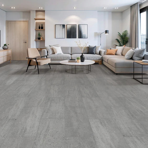 BIYORK HydroGen 6 Tile in Rhino showcases a sleek, contemporary grey palette with a smooth stone-inspired finish. Built for performance and style, this 100% waterproof SPC tile features a durable 6 mm core and pre-attached underpad for comfort and sound reduction. Easy to install and maintain, Rhino is ideal for kitchens, bathrooms, and high-traffic spaces needing modern elegance and lasting strength.