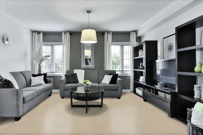 The gorgeous tone of Opal Horizon from BIYORK FLOORS HydroGen 7 is the newest model and the flagship of the HydroGen Lineup with a 7mm thickness that is absolutely necessary for water-resistant flooring. This floor provides excellent stability, durability, and comfort thanks to Biyork's incredibly quiet UnderToneTM pad. The HydroGen 7 Collection is the first WaterProof Floor to include a layer of Anti-Bacterial coating above the protective layer, which prevents 99.9% of major bacteria from spreading, making your home a safer place. With True Touch TextureTM technology, HydroGen 7 mimics a natural wood floor for realism and visual appeal. This offers you the character and feels of a natural floor while also adding a powerful protective layer for wear resistance.