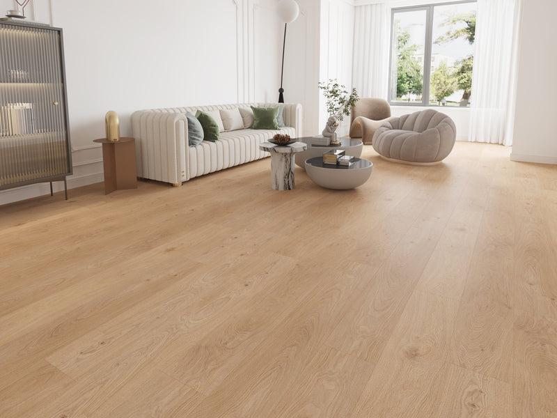 Introducing "Coral Sunset" from the Aqua X Collection: the epitome of luxury and durability in laminate flooring. Crafted with meticulous attention to detail, this 12mm waterproof laminate exudes elegance while offering unparalleled performance.