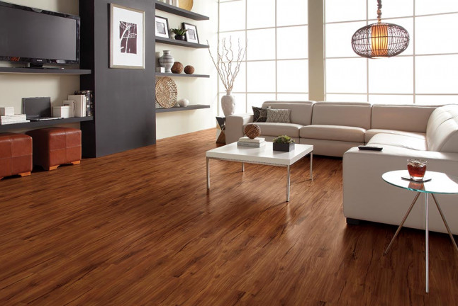 The beautiful colour of Gold Coast Acacia from COREtec Plus gives homeowners a stylish and more advanced alternative to glue down LVT, solid locking LVT, or laminate flooring. Only COREtec Plus features our innovative, patented core structure – this extruded core is made from an exclusive combination of recycled wood and bamboo dust, virgin PVC and limestone.