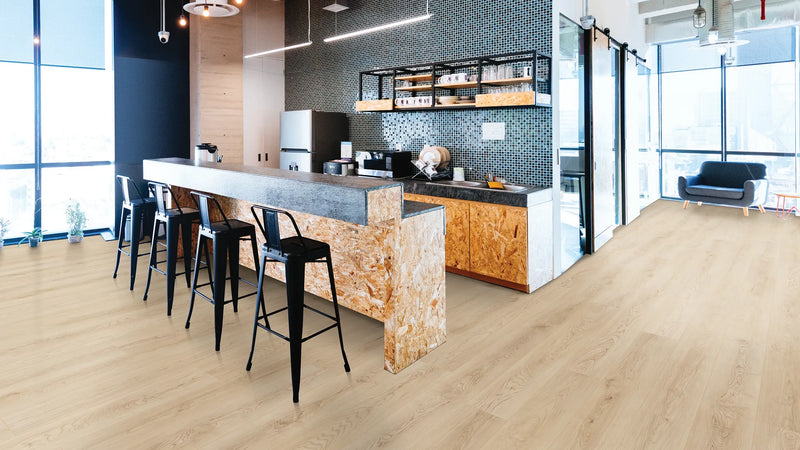 Enhanced bevels. This means those little spaces between each plank will be more clearly defined. (It won’t just look like one piece of vinyl). Depending on the specific style, these bevels might be painted on, or they may even be integrated onto the plank during manufacturing. The latter makes our most realistic visual.