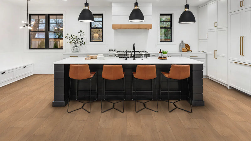 Enhanced bevels. This means those little spaces between each plank will be more clearly defined. (It won’t just look like one piece of vinyl). Depending on the specific style, these bevels might be painted on, or they may even be integrated onto the plank during manufacturing. The latter makes our most realistic visual.