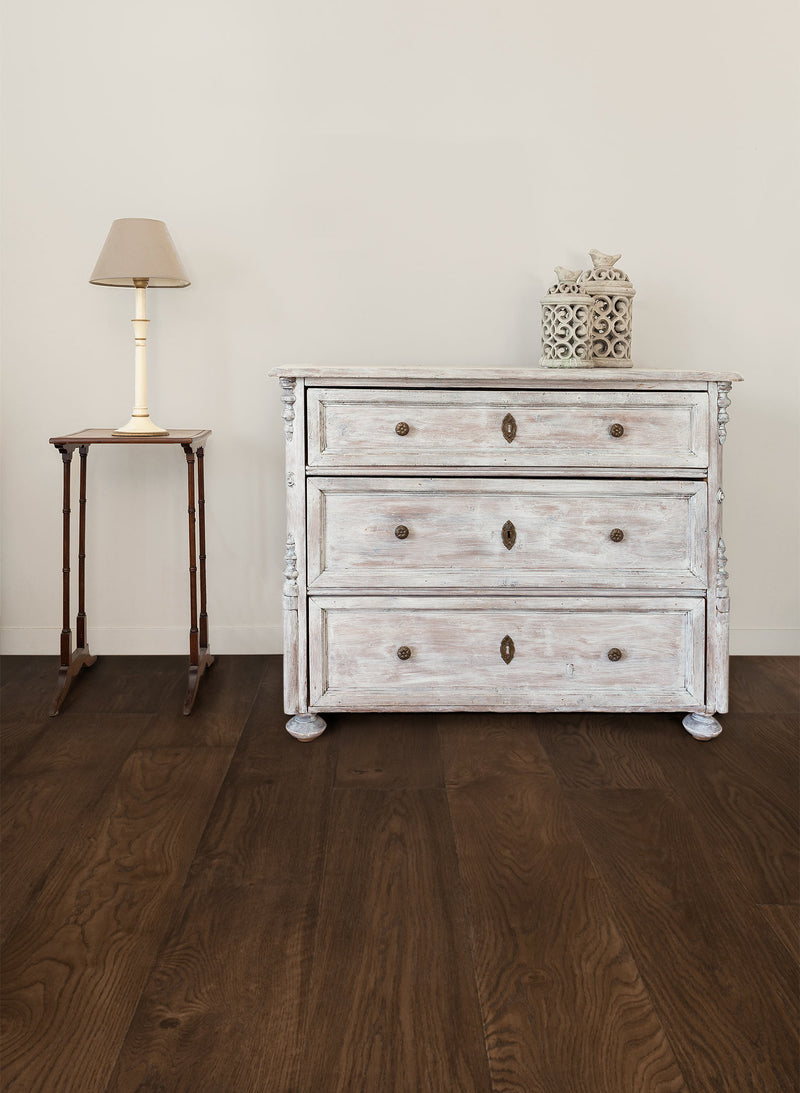 This rich vintage brown floor is a classic favorite, lending an elegant air to living spaces and complementing a wide variety of design styles. For all its good looks, Lugano –like every CRAFT floor is made from 100% certified-sustainable North American wood and ultra-low VOC Coatings. Lugano is made from CRAFT Premium Grade planks that have been hand selected to highlight the natural beauty of White Oak. Our skilled craftsmen individually fashion each plank through refined techniques, creating wire-brushed textures which accentuate the wood grain’s depth and inherently beautiful patterns.