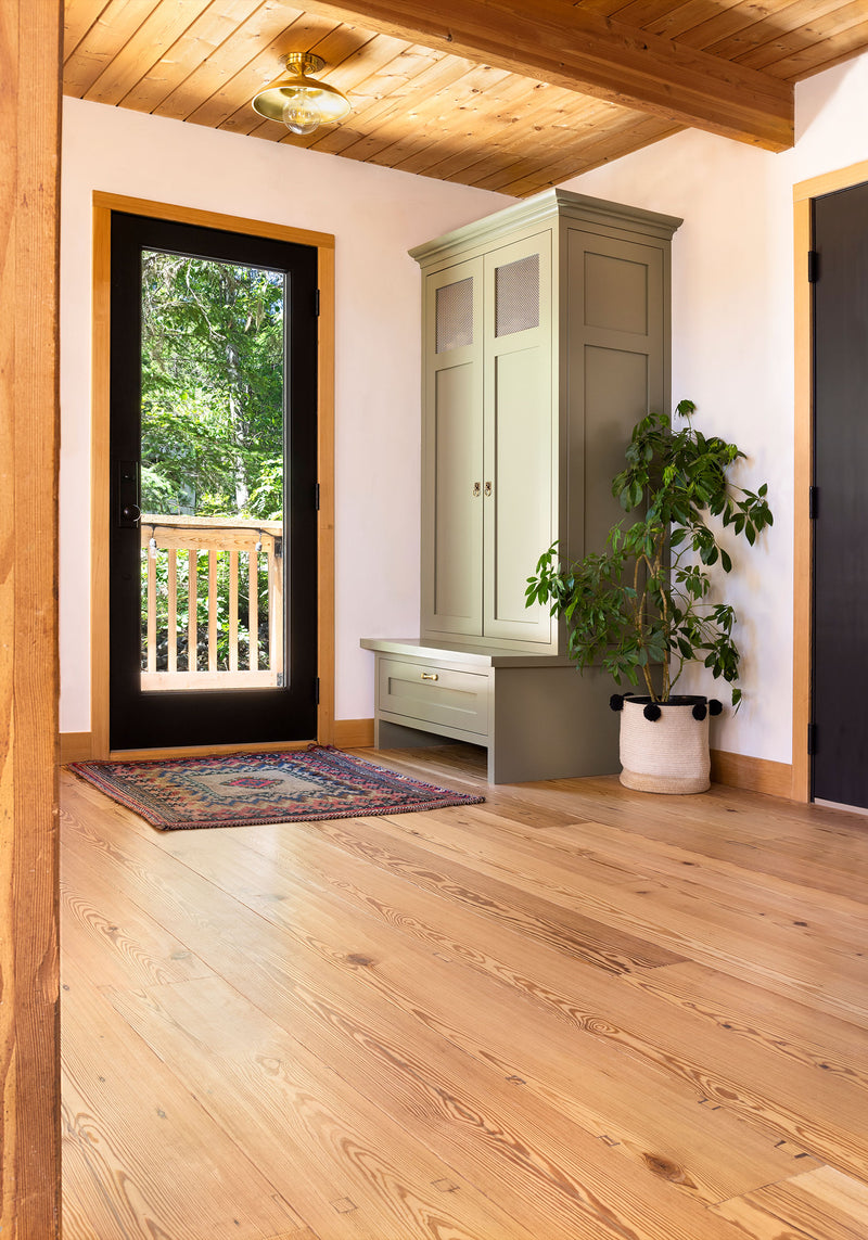 A light beige patina with blonde sapwood highlights make Hayloft both beautiful and versatile. Hayloft’s expertly restored planks provide a solid design foundation that works well in numerous settings from trendy urban lofts to comfy lakeside cottages. The skillful artisans who hand-work each plank enhance and preserve reclaimed heart pine’s inherent character: nail holes and checks are expertly filled, and bolt holes and larger defects are repaired with natural heart pine wood plugs and patches. Each plank is hand textured and the bevels of every board are hand chiseled. The air-dried finishes are also applied by hand, ensuring that the wood will exhibit the kind of lustre that only traditional methods can achieve.