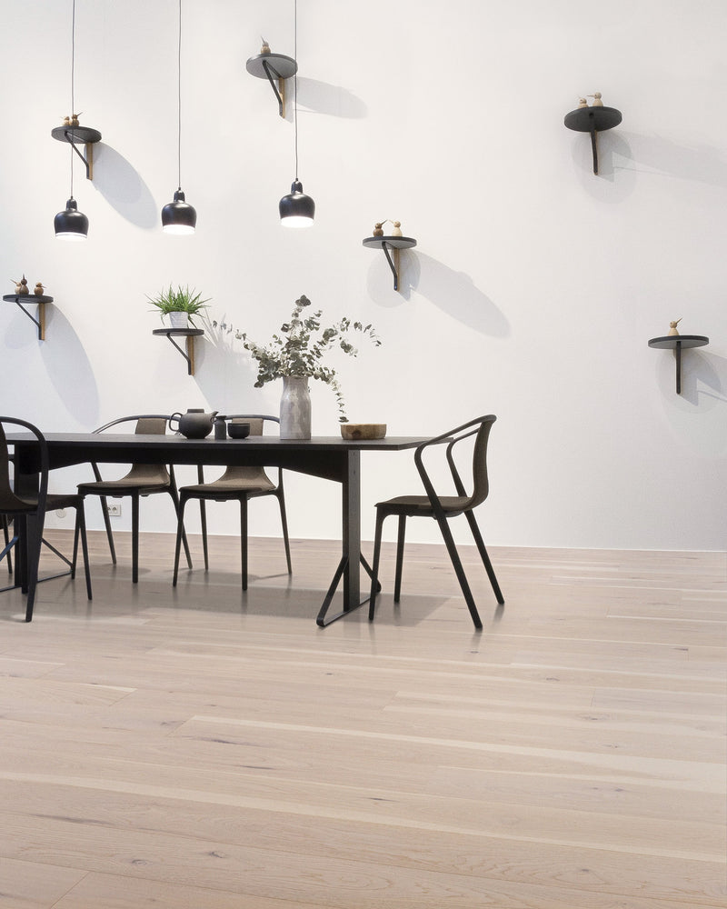 Useful in modern spaces, Bianco is a limed hickory floor with just enough character to capture the authentic beauty of natural wood. Bianco features a flat, wire-brushed texture and light sapwood which contrasts beautifully with the natural beige tones found in the heartwood.