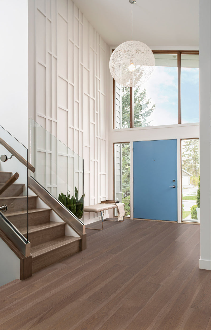 CRAFT Urbana collection offers urban and sophisticated, contemporary wideplank hickory. Urbana features a sense of vibrant cosmopolitan style and sophistication and is a popular choice for luxury residential homes, urban lofts, and designer spaces. Real wood's everlasting appeal is enhanced by Urbana's smooth surfaces and refined colours, made from hand-selected planks of hickory of the highest grade. Embrace the refined allure of a wide-width, long-length floor that displays fewer seams and a more seamless appearance. The Urbana Collection features a blend of gray tones and rich hues, perfect for contemporary furniture and designer concepts.