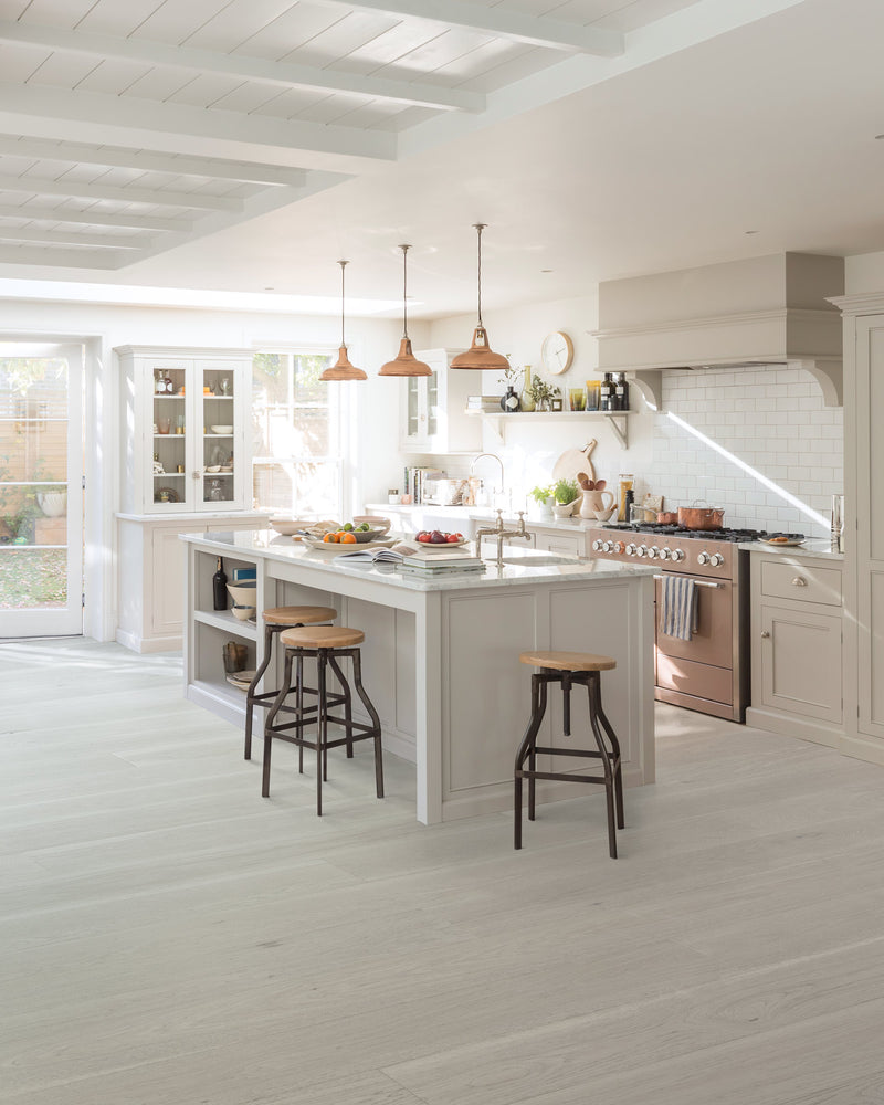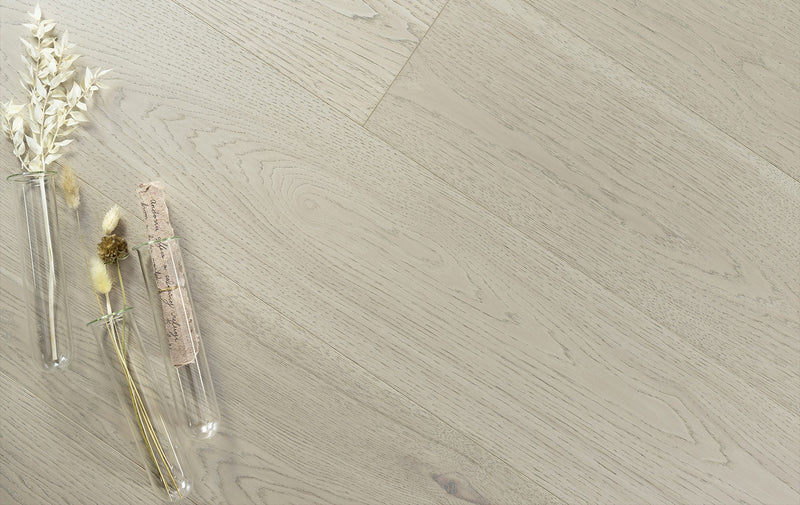 Andorra’s neutral beige hues combine the beauty of natural wood with a clean, elegant feeling. Andorra is beautiful and sustainable. Like all CRAFT floors, Andorra is made from certified-sustainable (Sustainable Forestry Initiative® SFI-01898) North American wood and ultra-low VOC Coatings. Review our higher standards. To achieve Andorra’s unique and stunning look, CRAFT’s artisans start by selecting beautiful wide planks from our highest CRAFT Elite Grade of Hickory. Andorra’s wood is then put through a multi-step colour treatment process which involves bleaching and staining in order to achieve its unique and natural greige (grey + beige) colour.