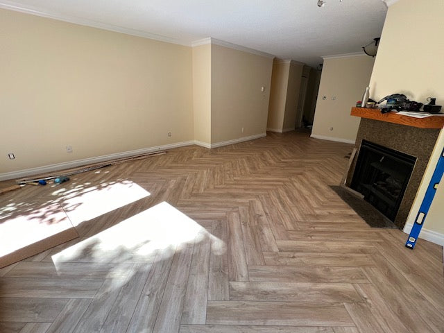 - Floor Installation: Cyrus Floor Athens Herringbone Collection SPC vinyl flooring is installed through 4 Side Uni-click