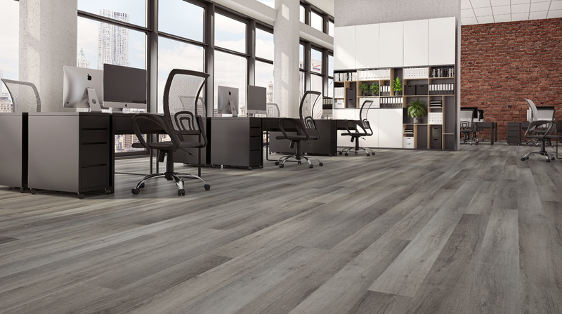 Embrace the cool sophistication of Bathsheba from the Goodfellow Dubai Collection—a resilient SPC flooring measuring 5.5 mm x 5.83" x 48". Enhanced with a 1.5 mm EVA pad and EIR finish, it withstands extreme temperatures (-60°C to 60 li. ft.) without transition molding. Supported by Unilin 'Drop Lock' technology, this water-resistant flooring stands strong against direct sunlight. Goodfellow's global presence and innovation echo in this brown-hued gem, meeting market demands sustainably.