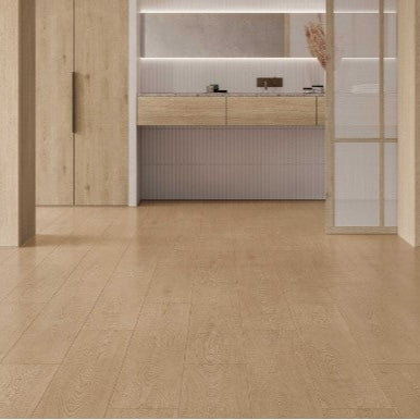 The FINSA 12 Collection of laminate flooring, exclusively designed and manufactured in Spain; incorporates a harmonious proportion between the length and width of every plank, producing an aesthetically pleasing and realistic appearance. This collection is carefully designed to convey a perfectly balanced and natural feeling, ensuring a visually realistic and cohesive look for your space. With its exceptional format, along with up to 100 hours of surface top-down water resistance and a 48-hour lab-tested certified water resistance stipulated by NALFA; and high abrasion resistance rating at AC6, these planks offer a functionally seamless and captivating flooring solution for any room in your home.