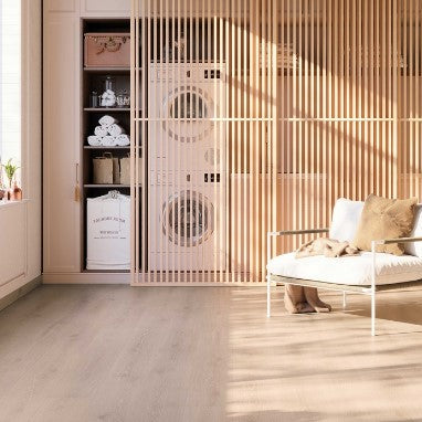 The FINSA 12 Collection of laminate flooring, exclusively designed and manufactured in Spain; incorporates a harmonious proportion between the length and width of every plank, producing an aesthetically pleasing and realistic appearance. This collection is carefully designed to convey a perfectly balanced and natural feeling, ensuring a visually realistic and cohesive look for your space. With its exceptional format, along with up to 100 hours of surface top-down water resistance and a 48-hour lab-tested certified water resistance stipulated by NALFA; and high abrasion resistance rating at AC6, these planks offer a functionally seamless and captivating flooring solution for any room in your home.