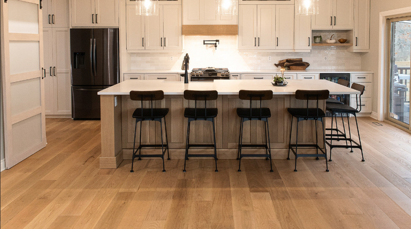 Being our most high-end product, Our popular Crown Land Collection of oak engineered flooring is bandsaw-marked and offers a durable 4mm veneer. Through the labour-intensive manufacturing process, the planks are smoked, saw-marked, and hand-sanded to achieve a beautiful standout colour that looks rich and gorgeous while still maintaining the natural beauty of the wood.