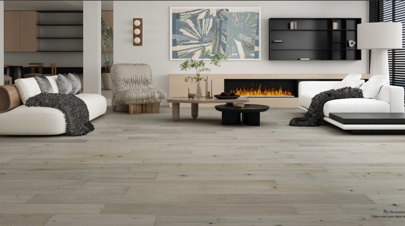 Our Scandinavian collection of modern oak engineered flooring is of the higher grades materials. The fashion-forward set is crafted with a matte lacquer finish and a subtle light brushing.