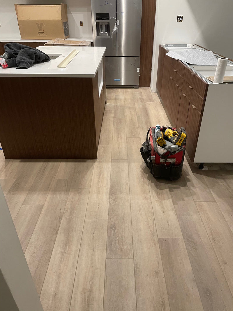 - Floor Installation: Home’s Pro Moscow Collection SPC vinyl flooring is installed through Click Lock