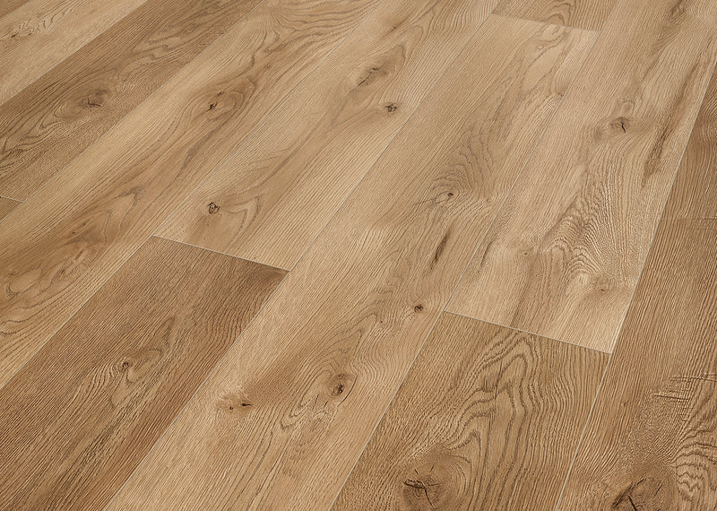InHaus Lamdura Landmark is produced by Classen in Germany's largest vertically integrated laminate factory in the heart of sustainably harvested forestland. Landmark laminate floors are characterized by Embossed In-Register texture, four-sided bevel edges, and a distinctive European aesthetic. A GreenGuard Gold, a Blue Angel, and a CARB2 product are all features and certifications of InHaus laminate floors for indoor air quality. With its highest durability rating of AC5, InHaus Lamdura Landmark is extremely durable and suitable for high-traffic areas, commercial, and home use. There is one unique feature about this laminate: it comes with a pad already attached. It has a thickness of 8mm plus a 2mm pad attached (a total thickness of 10mm).