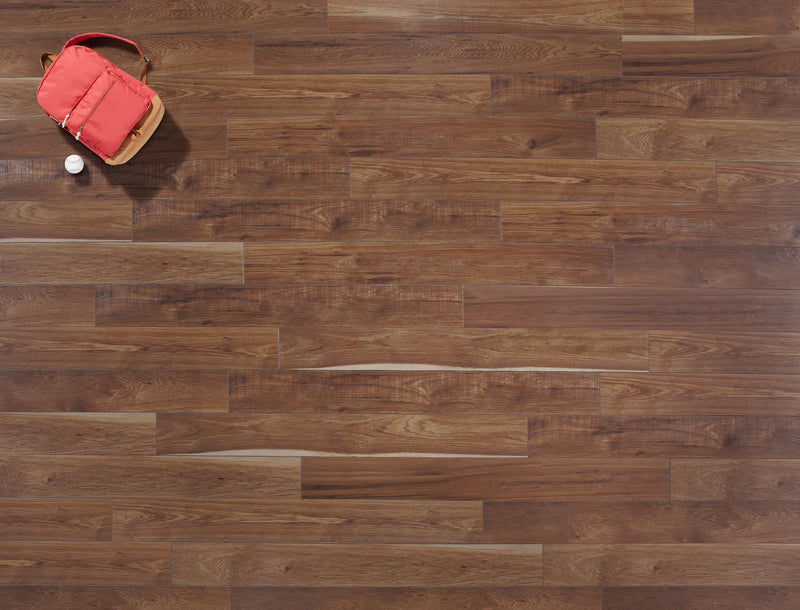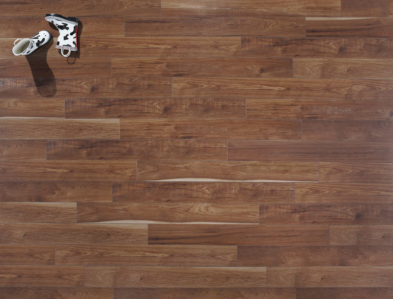 Featuring a subtle hand-scraped texture along with knots and sawmarks Sawmill Hickory has lots of the realistic character found in wood. The natural beauty of an authentic rustic hickory is wonderfully replicated with the handsome floor.