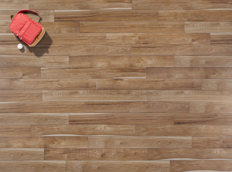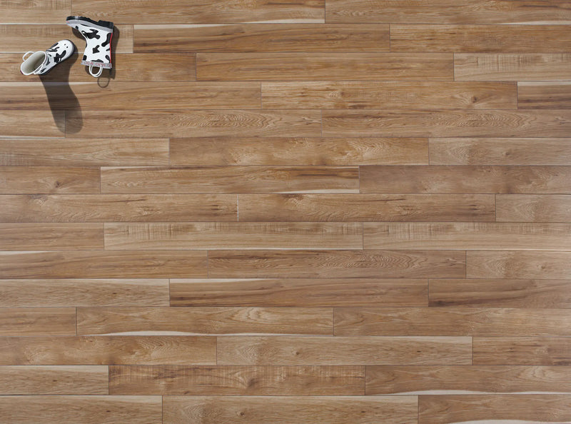Featuring a subtle hand-scraped texture along with knots and sawmarks Sawmill Hickory has lots of the realistic character found in wood. The natural beauty of an authentic rustic hickory is wonderfully replicated with the handsome floor.