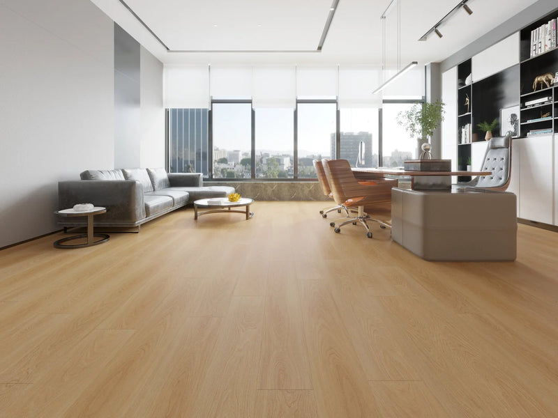 The collection features a durable, waterproof WPC (Wood-Polymer Composite) core, providing superior stability and comfort underfoot. Each plank is extra-long and wide, creating a spacious, modern aesthetic. Though the build is equivalent to a 10 mm plank in strength, the lengthened dimensions deliver elegance and a sleek look—ideal for both residential and light commercial spaces.