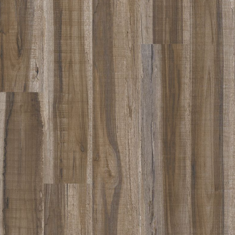 Add Exotika Luxury Vinyl Planks to interiors to help boast light-brown tones complemented by darker brown and gray-blue grains for an on-trend salvaged appearance.