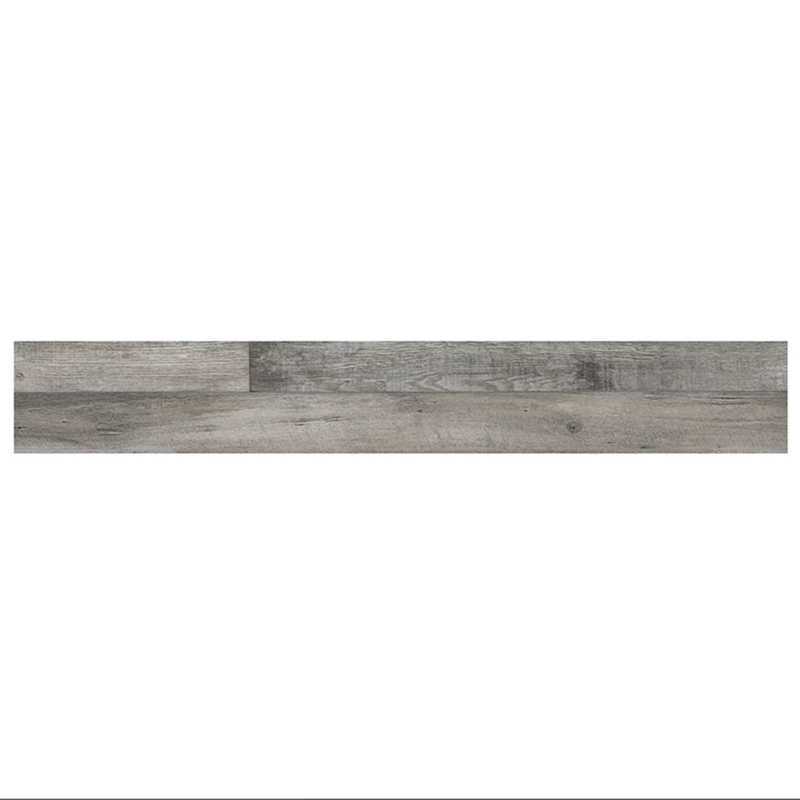 Featuring a beautiful combination of gray and greige tones with random sized wood pieces in each 7v48 plank, this LVP flooring offers an authentic wood look with its unique grains and knots.