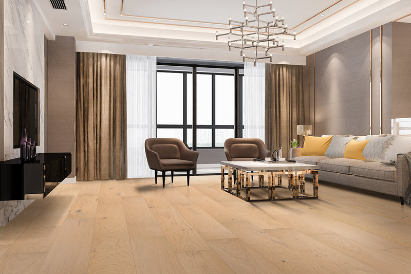 2 MM genuine sliced cut European White Oak top layer laid transversely to backing layers to further improve stability