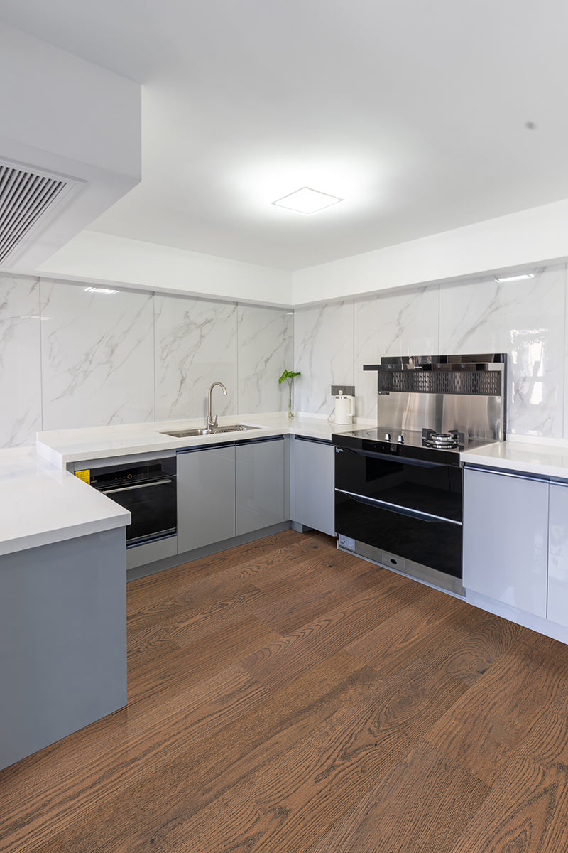 4 MM flagship sawn cut European White Oak top layer laid transversely to backing layers to further improve stability