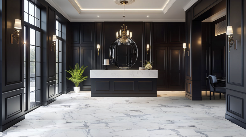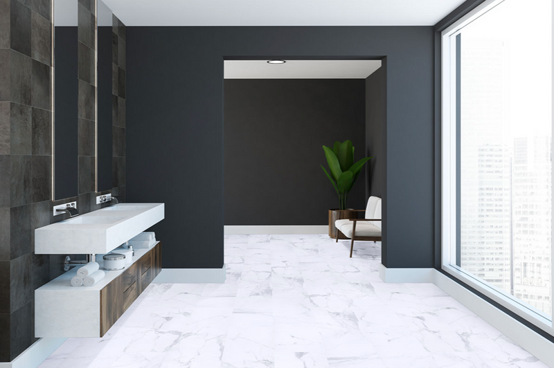 A bright white background and heavy smoky gray veins meld beautifully in Calacatta Legend Luxury Vinyl Tile. This vinyl flooring offers the look of natural stone that is always sophisticated and always on-trend. The flooring is 100% waterproof and features CrystaLux™, a protection layer that provides durability and longevity, protecting against everyday wear. An innovative 1MM pre-attached backing offers sound protection and comfort underfoot. Calacatta Legend is coated with PietraTech™—an MSI exclusive finish that emulates true-to-life texture. In addition, it features a patented locking system for ease of installation.