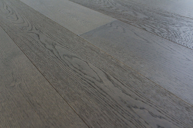 The Nude Roche from Pravada Haute Couleur Collection has alluring blend of ash brown, smoky grey and mocha tones. Wire brushed texture with low sheen in 7.5” wide planks. The double smoking process gives this floor a classy high end finish.