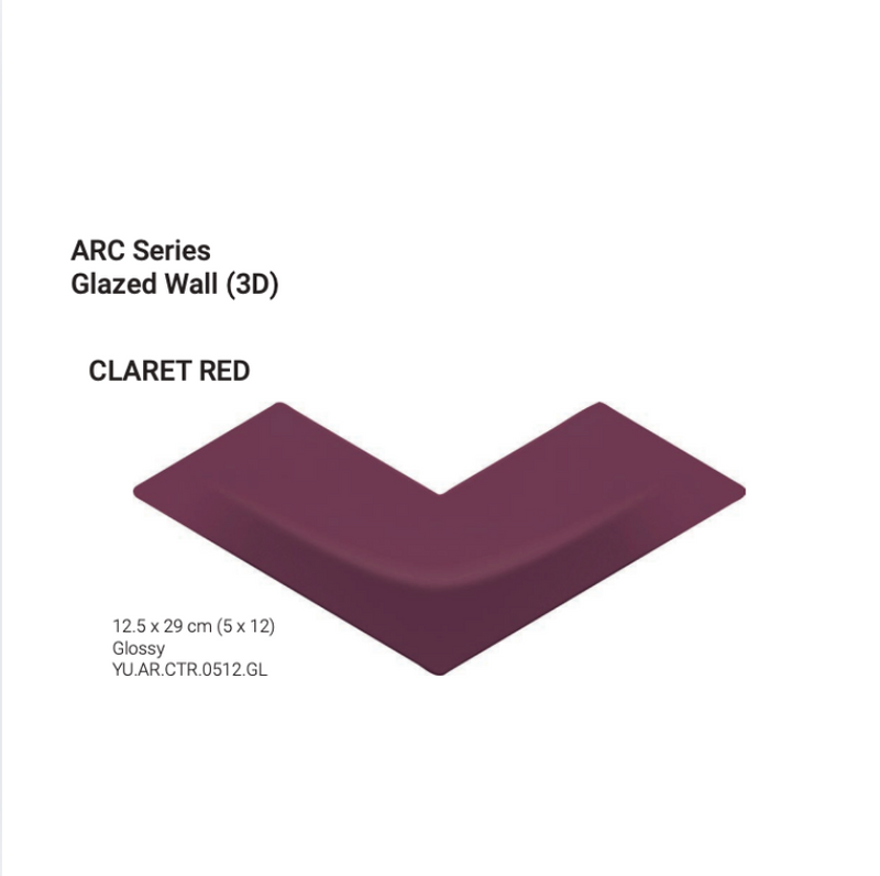 Introduce bold flair to any interior space with the Arc Series Claret Red 5" × 12" gloss ceramic wall tile. This striking tile features a dynamic 3D arc-shaped surface that reflects light and enhances wall depth. The vivid claret red glaze brings warmth and interest to backsplash details, feature walls, or creative mural accents in residential and hospitality settings. Pairs seamlessly with other Arc Series colors for layered design impact.