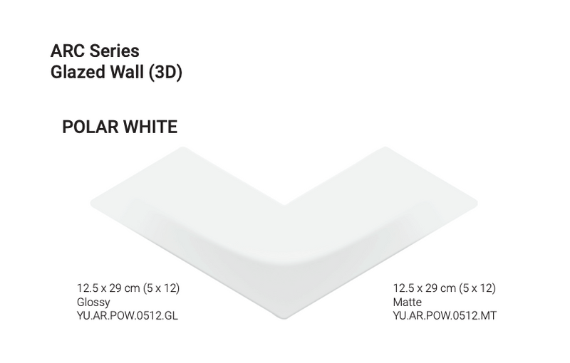 Brighten your space with the elegant Arc Series Polar White 5″ × 12″ gloss ceramic wall tile. Featuring a sculpted 3D arc-shaped surface, this tile transforms light and shadow into architectural depth. Its crisp, pure white gloss glaze adds refined contrast and visual interest—ideal for backsplashes, bathroom accent walls, feature installations, and hospitality interiors. Seamlessly coordinates with other Arc Series shades for layered design expression