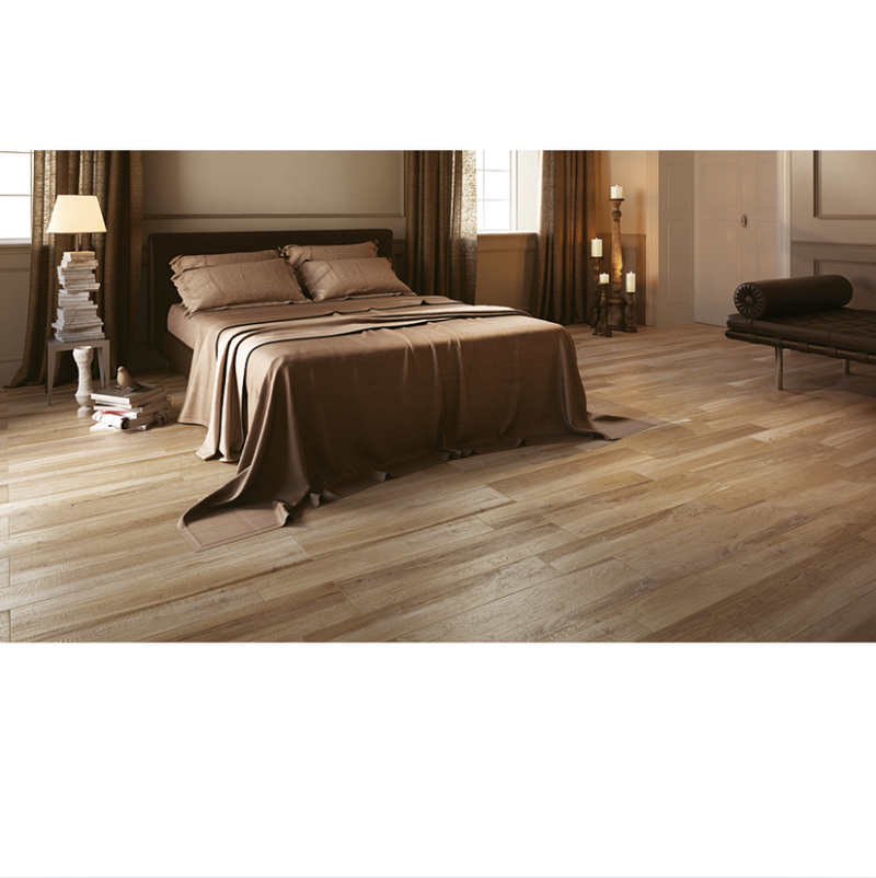 AEQUA Tur is a warm beige‑tone wood‑look porcelain plank, offering the subtle sophistication of reclaimed light wood with all the performance benefits of porcelain. The matte finish and rectified edges deliver a refined, continuous look—perfect for residential and commercial settings.