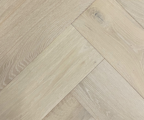 PRAVADA LE RÊVE COLLECTION AMBIANCE is a beautiful blend of light cream tones and hints of grey. These 7.5" wide Herringbone style planks in European White Oak, offer flexibility of design with a Scandinavian flare.