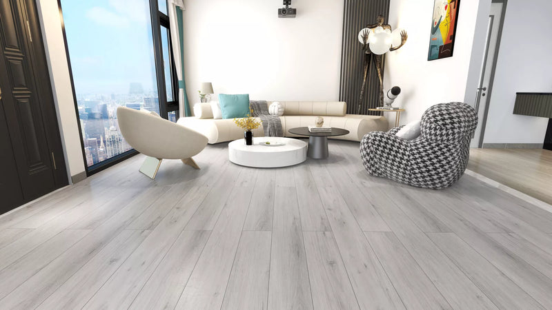 White with some Grey elements, oak mystic white is the most modern color in the Pristine floor collection. At the same time Oak mystic white being simple, it also brings scientific and technological senses to your room. Wall and furniture with simple black / white color are its best partners.