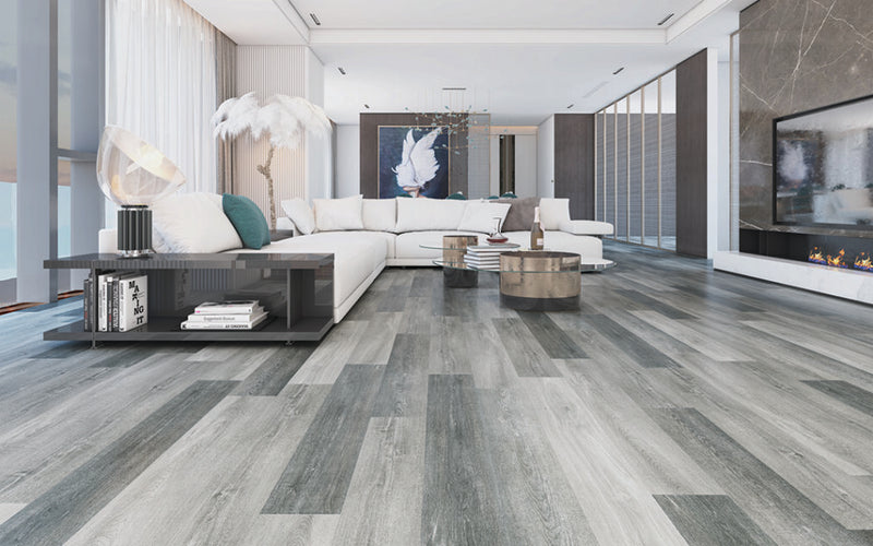 Quieter strength. A stone polymer core, wider plank flooring with an attached pad.