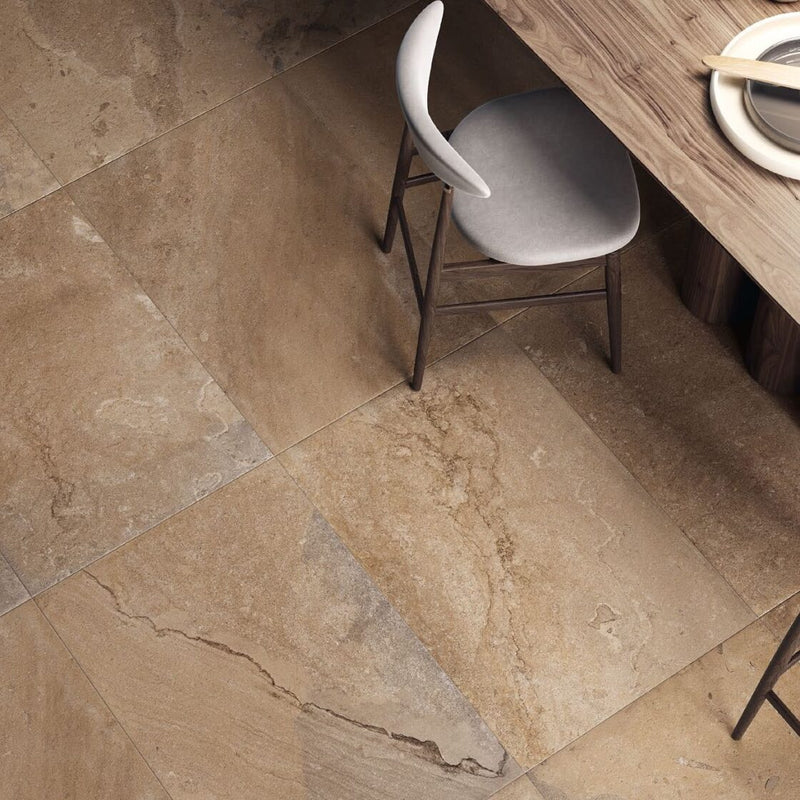 Bring enduring elegance to any space with the rugged charm and superior durability of Tuffeau Terra porcelain.