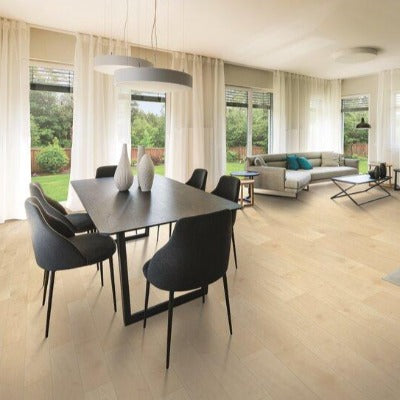 The beautiful shade of Natural Oak from TORLYS Leuco Collection has a gorgeous hardwood design, a 2mm connected pad for greater sound absorption, and an easy-to-clean surface that can even be damp mopped. TORLYS Leuco is a lovely collection of delicate oak designs, each with an attached pad for added sound absorption and comfort. It has a neutral color scheme and clean oak designs.
