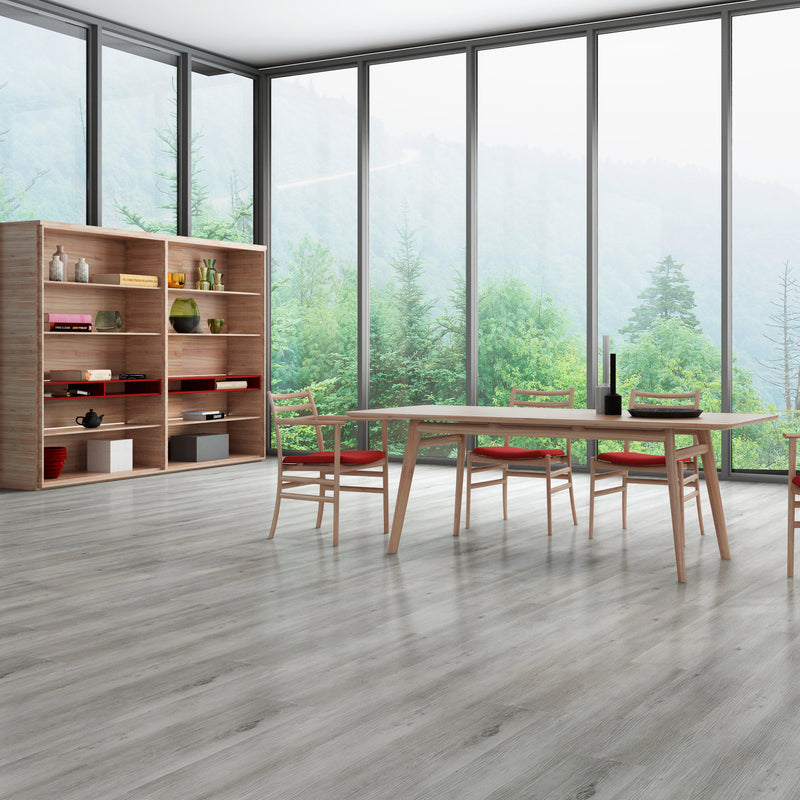 Finished with a vinyl top layer that allows us to replicate any style and texture, SPC Flooring truly rivals Hardwood and Laminate. For those looking for flooring that will withstand consistent amounts of high traffic whether in a residential or commercial space, with the ease of DIY installation and an astounding aesthetic, SPC Flooring is the ideal. Furthermore, this type of flooring is environmentally friendly throughout its entire production cycle, constructed without the use of glue, eliminating the risk of formaldehyde completely.